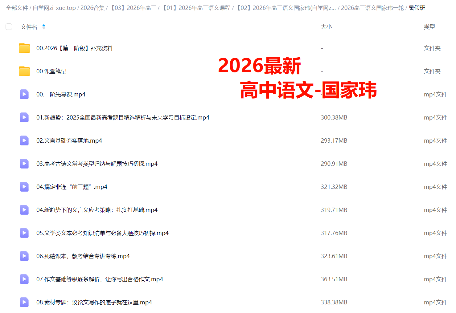 2026 高三语文 张国玮 一轮 百度网盘 数量